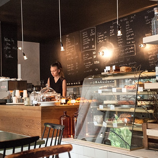 Alles ist superfrisch und hausgemacht, Vegetarier und Veganer kommen definitiv voll auf ihre Kosten. Was auffällt: im wahrhaft nahrhaft wurde nochmal jenseits der Klischee-Kombinationen gedacht! Es gibt z.B. Zimtbagels mit Ziegenkäse, Pflaumenmus und Rucola oder Thymian-Süßkartoffel-Bagels, Mais-Mozzarella-Möhren-Quiche und Rote-Beete-Salat. Für die Süßschnuten gibt es neben Pastel de Nata und Mini Cheesecakes mit weißer Schokolade, auch Espresso-Schoko-Karamell-Schnitten und hausgemachte Marmelade! Beinahe nebenbei gibt es natürlich auch frischgepresste Säfte und wahrhaft guten Kaffee. Achja und sogar Leberwurstbällchen für Vierbeiner gibts im Programm! Das Publikum ist bunt gemischt aus ansässigem Stammpublikum und Touristen, zwischen 30-40, mit Hund und Kind, kreativ, herzlich und entspannt. Der perfekte Ort für einen unheimlich leckeren Start in den Tag. Öffnungszeiten: Mo-Fr 9-19:00 // Sa+So 10-19:00 Aunt Benny // Oderstraße 7, 10247 Das „Aunt Benny“ wird von Interieur Designern und Architekten betrieben und das sieht man auch. Modern minimalistisch, ein wenig Industrieflair durch raues Holz und Fliesen auf der einen Seite, Gemütlichkeit und eine persönliche Note (nicht nur) durch das per Hand notierte Angebot auf der dunklen Wand hinterm Tresen. Zu lesen gibt es neben Tageszeitungen, Vogue und Wired auch verschiedene Interieur-Magazine wie H.O.M.E. oder Elle Dekoration. Für das Aunt Benny kommen sogar Hipster aus Mitte nach Friedrichshain.